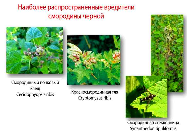 Черная смородина часто поражается клещами. Смородиновый клещ представляет собой членистоногое животное семейства галловых клещей, один из самых распространенных в Европе опасных вредителей черной смородины. Он, пожалуй, самый плодовитый. Взрослые клещи мелкие — 0,2-0,22 мм.